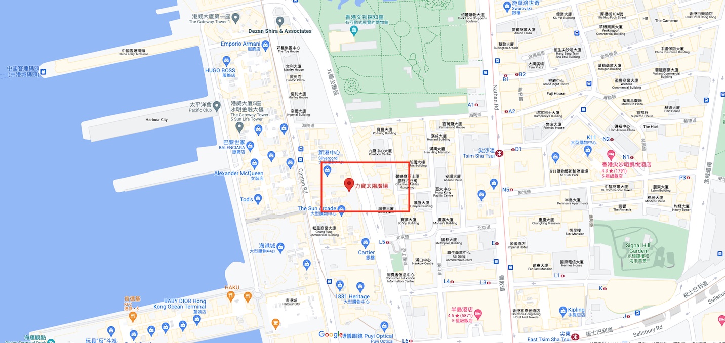 - 地址:香港九龍尖沙咀廣東道28號力寶太陽廣場 5樓 507室